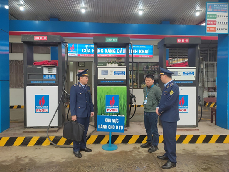 Đối với mặt hàng xăng dầu, Cục QLTT Hà Giang chỉ đạo các đội QLTT tổ chức trực 100% quân số; thường xuyên nắm bắt, giám sát đối với tất cả các hoạt động kinh doanh của các cửa hàng bán lẻ xăng dầu, hệ thống phân phối của các thương nhân đầu mối, thương nhân phân phối, đại lý kinh doanh xăng dầu trên địa bàn quản lý nhằm kịp thời phát hiện, xử lý nghiêm các hành vi vi phạm theo quy định của pháp luật.