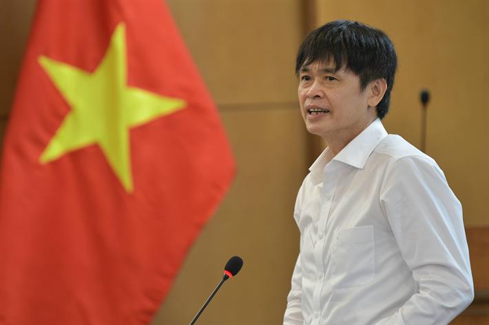 | Vụ trưởng Vụ GDMN Nguyễn Bá Minh báo cáo tại hội nghị trực tuyến. Ảnh: MT |
