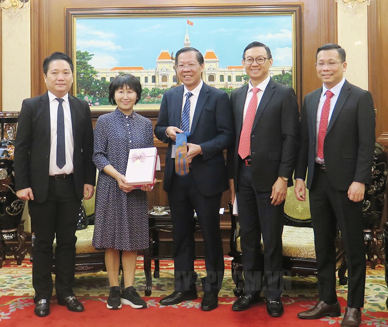| Chủ tịch UBND Thành phố Hồ Chí Minh Phan Văn Mãi tiếp bà Hirose Noriko, Đại sứ Du lịch Thành phố Hồ Chí Minh tại tỉnh Aichi, Nhật Bản. (Ảnh: thanhuytphcm.vn) |