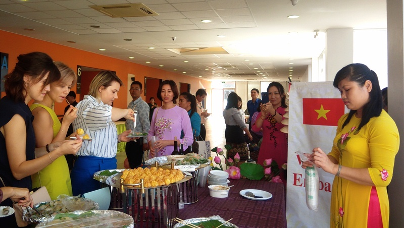 Đặc biệt, để giúp bạn bè thế giới hiểu hơn về tinh hoa ẩm thực của Việt Nam, chị em phụ nữ Đại sứ quán Việt Nam tại Lào đã mang tới Tiệc trà sản phẩm nem cuốn, bánh bột lọc Huế, rượu vang Đà Lạt... nổi tiếng của đất nước. Sự đa dạng, bắt mắt của gian hàng Việt Nam tại Tiệc trà đã thu hút rất đông bạn bè quốc tế tới tham quan, mua hàng và thưởng thức ẩm thực Việt./.
