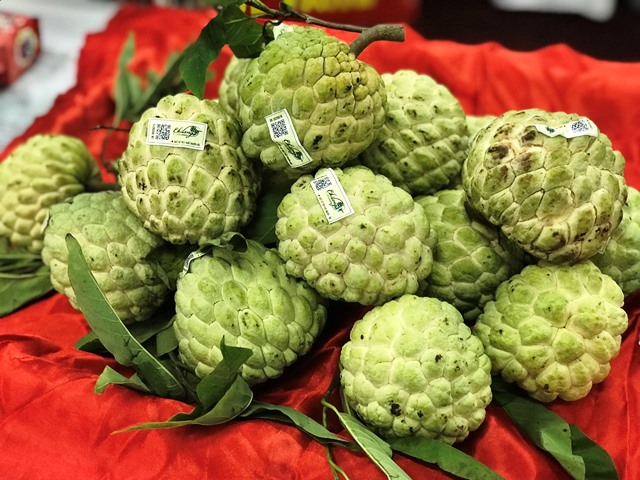 | Sản phẩm na Chi Lăng, Lạng Sơn có dán mã truy xuất hàng hóa (Ảnh: HNV) |