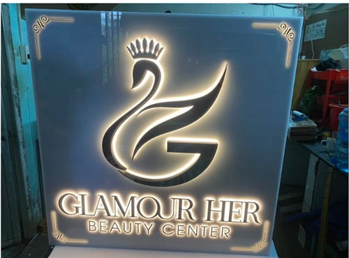* Chữ inox mặt mica hút nổi, gắn đèn led trong.