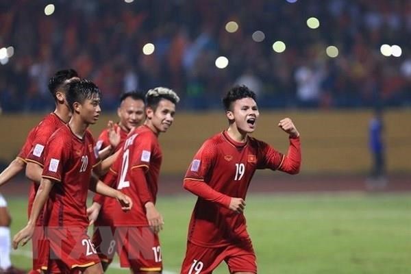 Đội trưởng U23 Việt Nam Nguyễn Quang Hải (số 19) và các đồng đội luôn tự tin thi đấu mỗi khi ra sân. (Ảnh: Trọng Đạt/TTXVN)