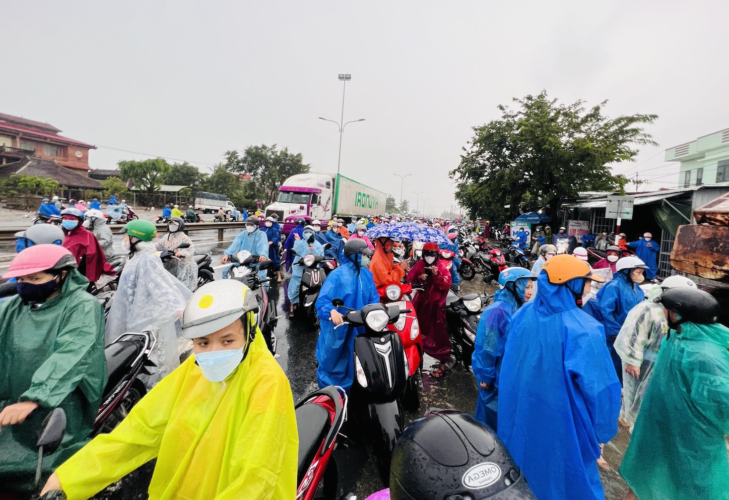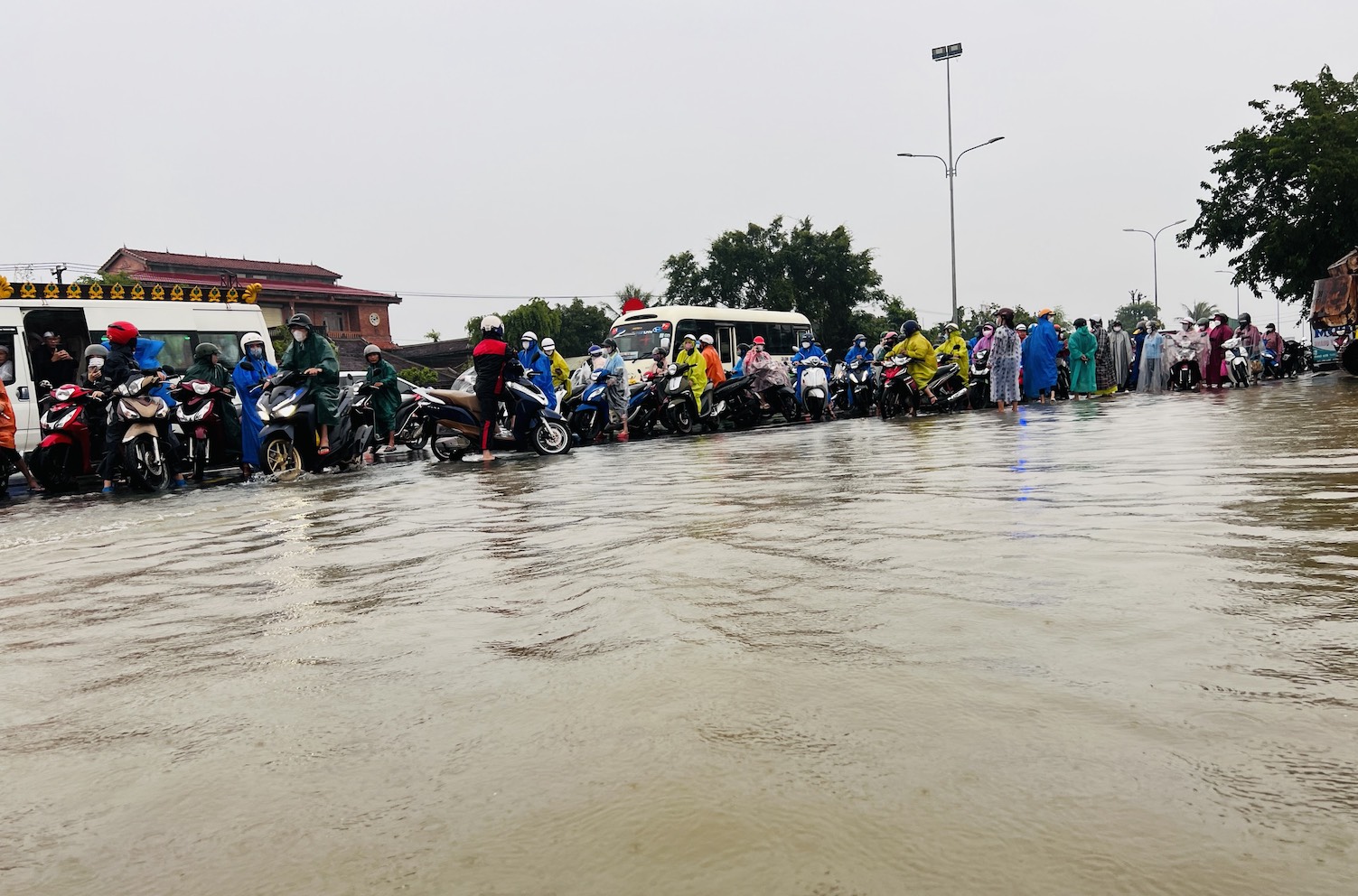Đặc biệt, liên tục từ đêm 15 đến sáng 16/10, mưa lớn khiến mực nước lũ dâng cao, tràn qua Quốc lộ 1A đoạn Km987+500- Km988+650 (thuộc địa phận xã Tam Đàn, huyện Phú Ninh, tỉnh Quảng Nam). Nước ngập sâu, các phương tiện tham gia giao thông qua lại khu vực này gặp rất nhiều khó khăn và nguy hiểm.