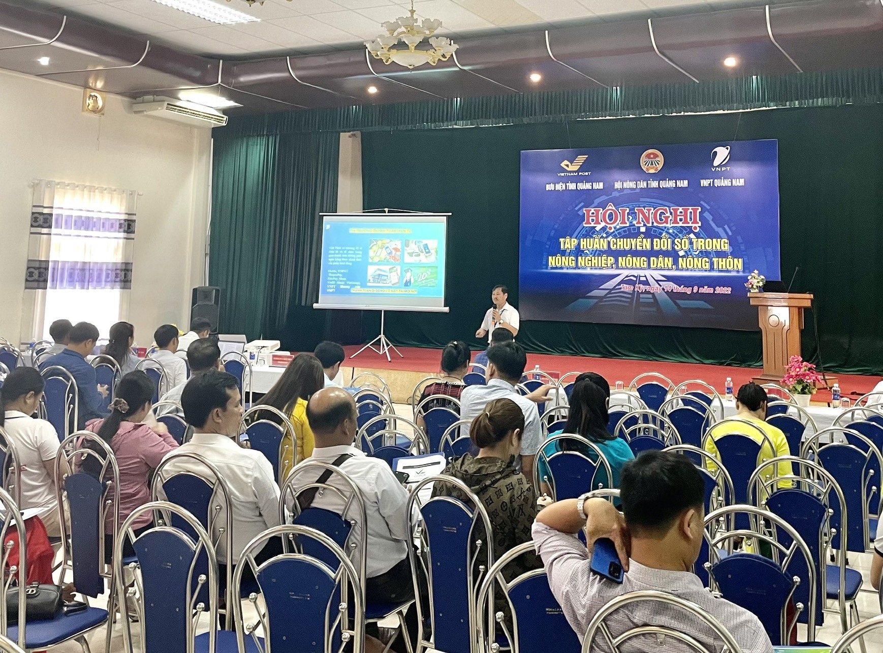 | Hội Nông dân tỉnh trổ chức lớp tập huấn trang bị kiến thức, kỹ năng chuyển đổi số cho cán bộ, hội viên, nông dân trên địa bàn tỉnh. (Ảnh: Báo Quảng Nam) |
