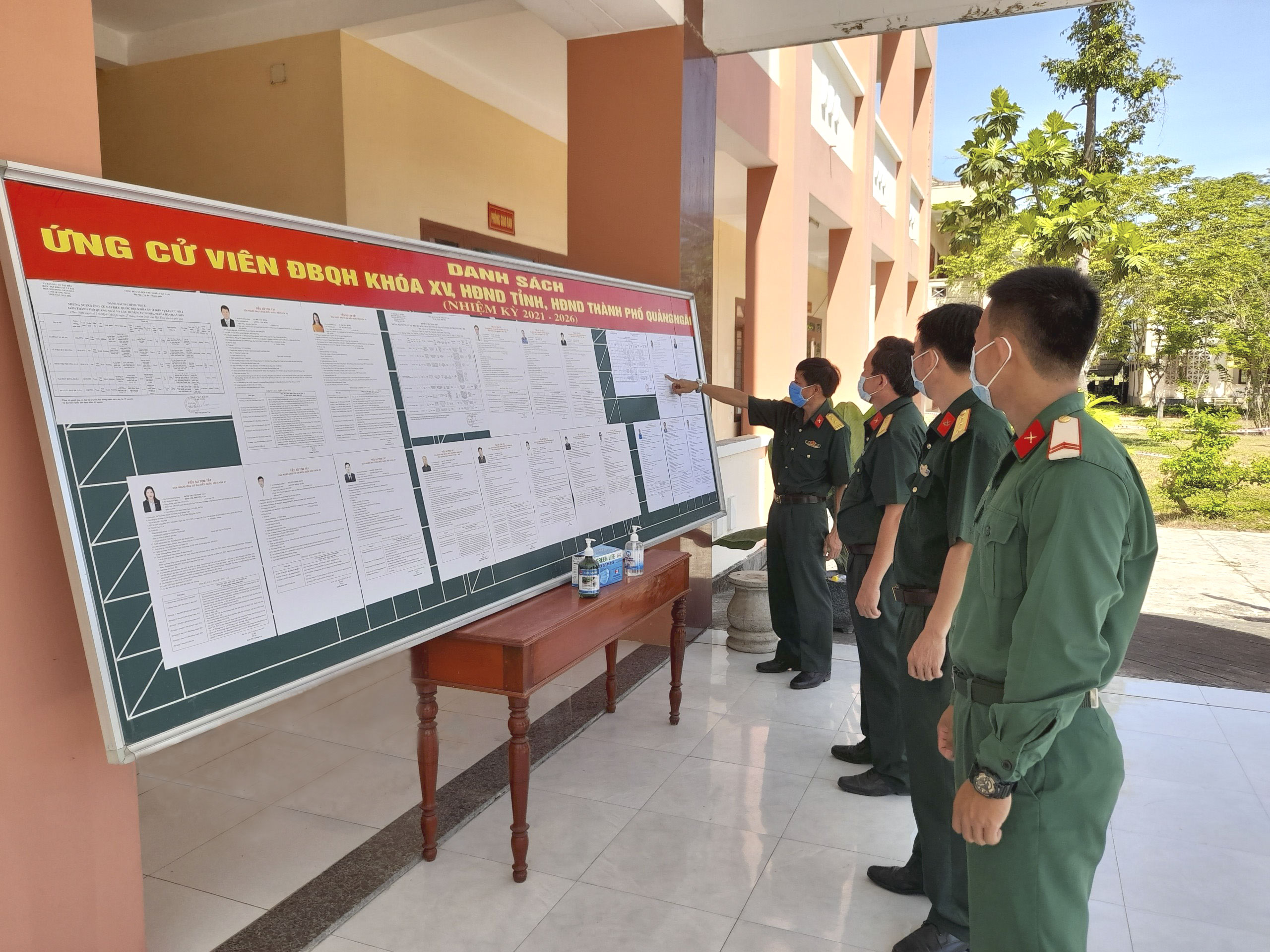 Đại tá Bùi Tá Tuân, Chính ủy Bộ Chỉ huy quân sự tỉnh Quảng Ngãi cho biết: “Ngay khi có kế hoạch tiếp nhận công dân Việt Nam về cách ly y tế tập trung, chúng tôi đã tham mưu Ủy ban Bầu cử tỉnh có phương án bổ sung danh sách cử tri, thành lập thùng phiếu lưu động. Để tránh tụ tập đông người, các thùng phiếu này sẽ được tổ bầu cử đưa đến tận phòng để cử tri bỏ phiếu. Phiếu bầu và thùng phiếu đều được khử khuẩn cả trước và sau khi bỏ phiếu. Đồng thời tăng cường tuyên truyền cho bà con nắm rõ quyền, nghĩa vụ của công dân và các nội dung liên quan đến bầu cử. Để bà con dễ tìm hiểu thông tin, danh sách cử tri và các ứng cử viên được bố trí ở những nơi thuận tiện theo dõi như dọc lối đi lại ở các dãy nhà ở; phía trước các khuôn viên… Các cán bộ, chiến sĩ phục vụ sẽ bầu 3 cấp, công dân cách ly bầu 2 cấp ”.