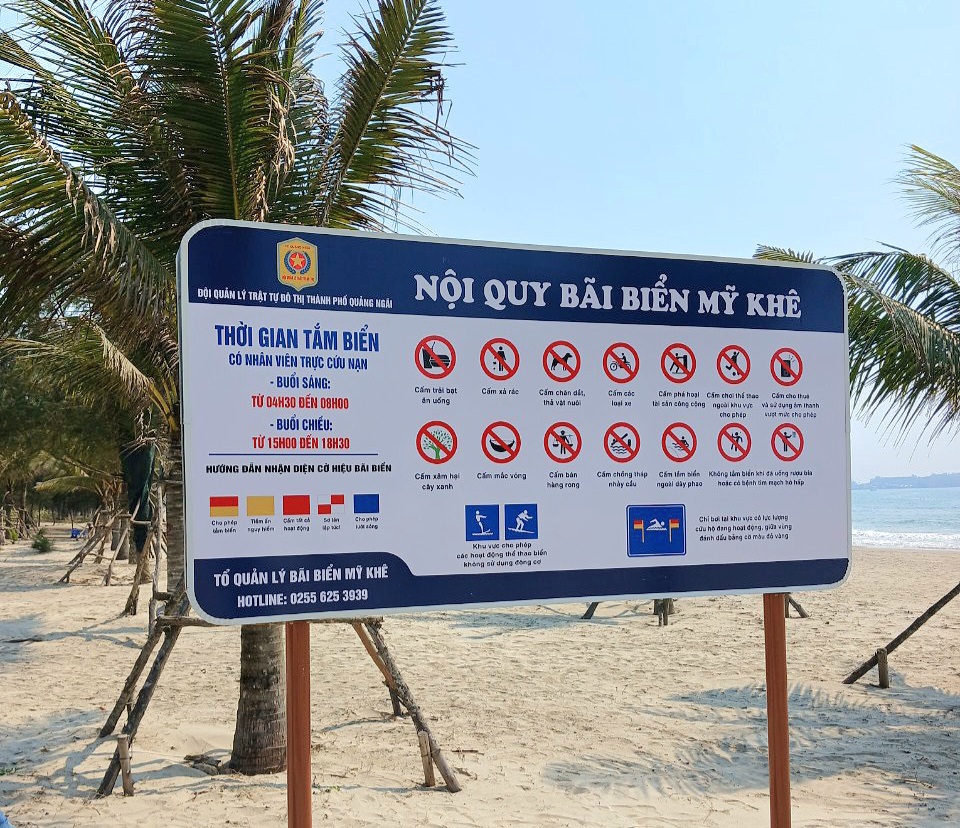 | Bảng nội quy được đặt ở khu vực bãi biển của TP Quảng Ngãi. (Ảnh: HP). |