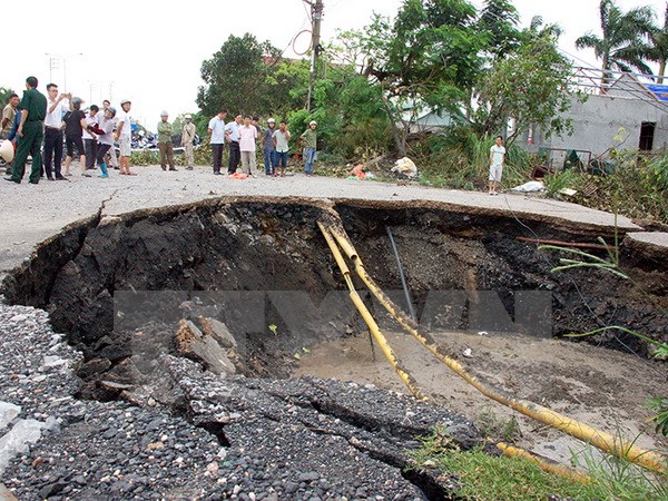 Trước đó, từ chiều ngày 12/9 vừa qua, mặt đất đường vào khu phố Nam Sơn thuộc phường Cẩm Sơn của thành phố Cẩm Phả xuất hiện nhiều vết nứt ngang, dọc. Đến rạng sáng ngày 13/9 vừa qua, các vết nứt trở thành hố sụt lún sâu gần 3m, rộng khoảng 100m. Phần sụt lún chủ yếu nằm trên đường đi, không ảnh hưởng nhà dân.