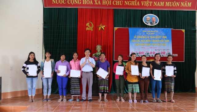 Ngày 2/10, Sở Tư pháp Quảng Trị phối hợp với địa phương ở huyện Hướng Hoá trao quyết định của Chủ tịch nước cho nhập quốc tịch Việt Nam cho người dân 4 xã Ba Tầng, A Túc, Xy và A Xing.