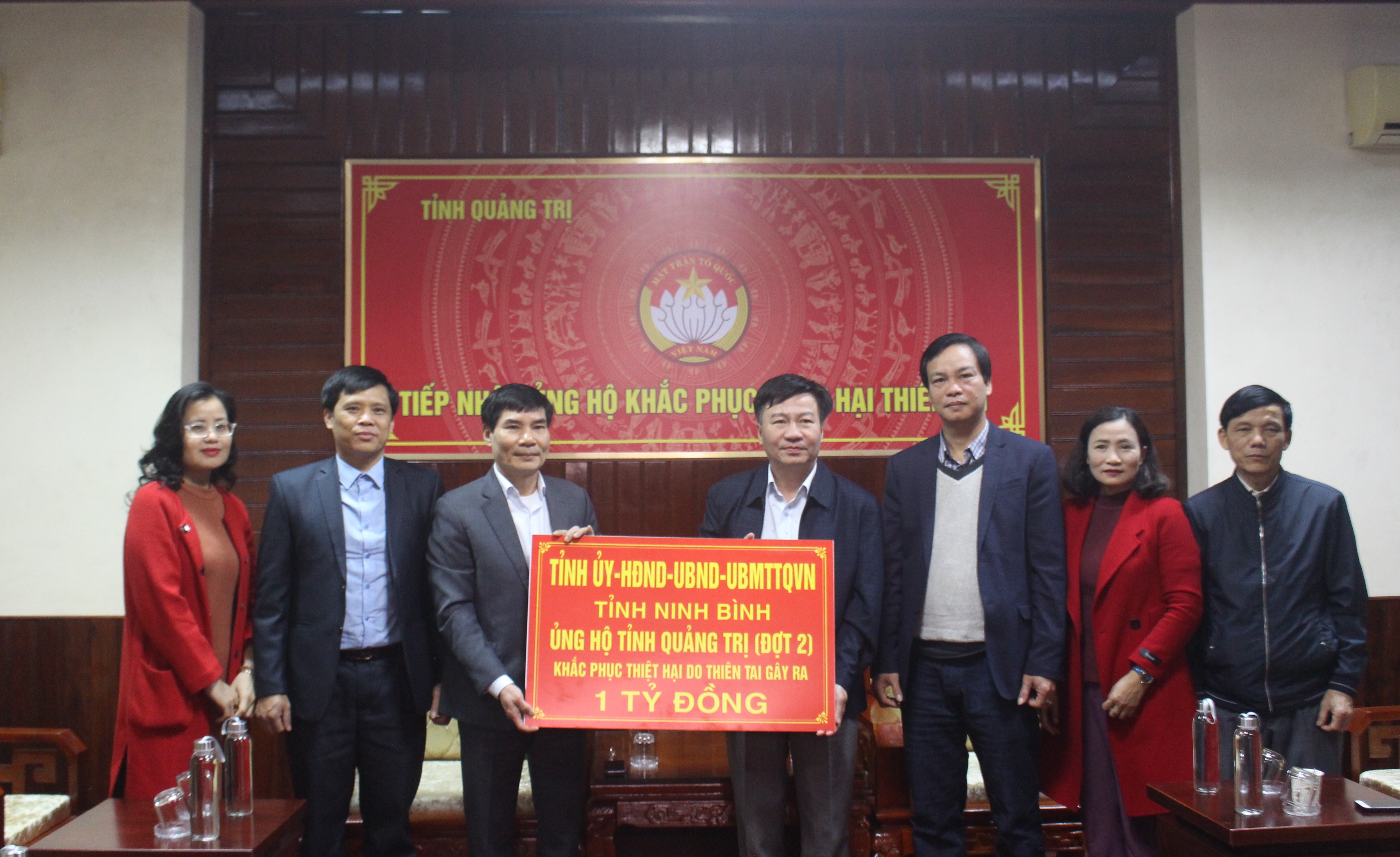 * Ủy ban Mặt trận Tổ quốc Việt Nam tỉnh Quảng Trị ngày 18/1 cho biết vừa tiếp nhận thêm 1 tỷ đồng ủng hộ của tỉnh Ninh Bình.