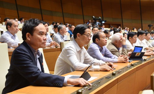 | Các đại biểu Quốc hội nhấn nút thông qua Luật Dầu khí (sửa đổi). Ảnh: QH. |