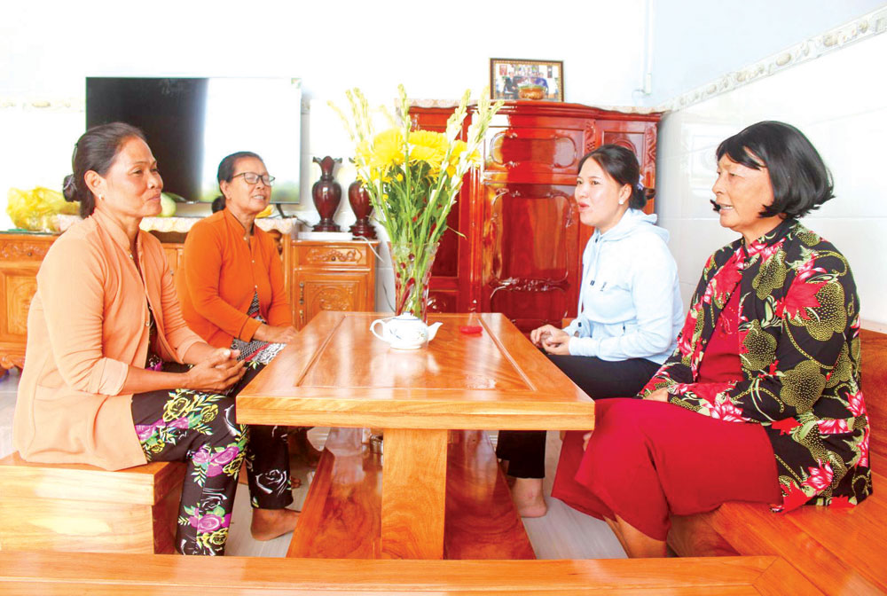 Bà Út Lan (bìa phải) trò chuyện, thăm hỏi đời sống hội viên.