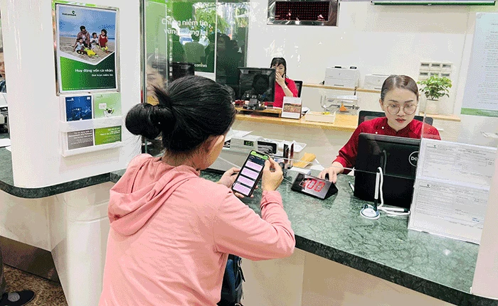 Khách hàng giao dịch tại Vietcombank Chi nhánh Cần Thơ. Ảnh: MINH HUYỀN