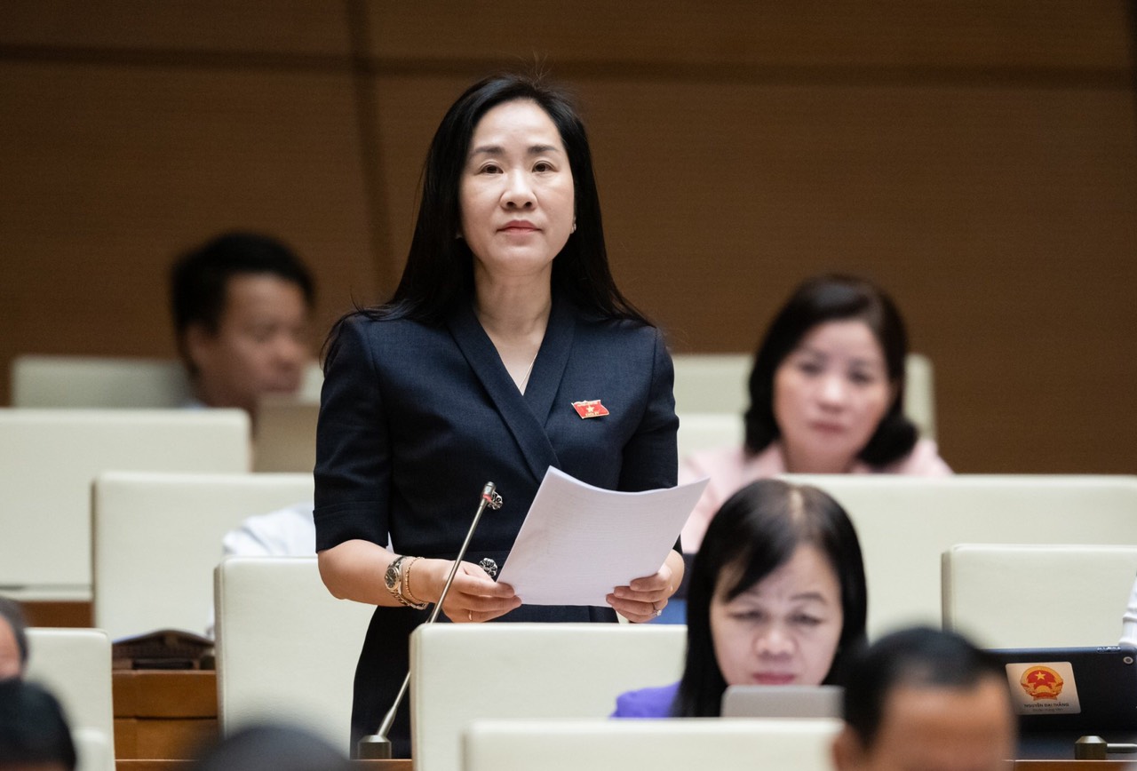 | Đại biểu Đoàn Thị Thanh Mai (đoàn Hưng Yên) phát biểu trước Quốc hội sáng 19/6. Ảnh: QH |