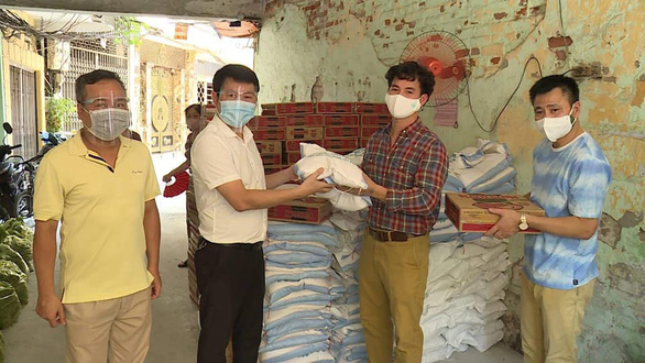 Nghệ sĩ Xuân Bắc (thứ 3 từ trái qua) trong chuyến tặng quà cho bà con ở Khâm Thiên (Hà Nội), anh ủng hộ việc ra đời bộ quy tắc ứng xử - Ảnh: Facebook Xuân Bắc