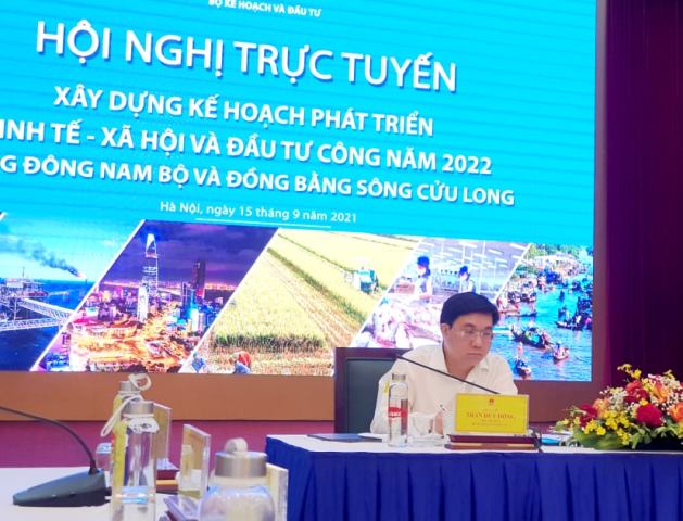 Chiều 15/9, tiếp tục chuỗi hội nghị trực tuyến với 3 miền Bắc, Trung, Nam, Bộ Kế hoạch và Đầu tư đã tổ chức hội nghị trực tuyến xây dựng kế hoạch phát triển kinh tế - xã hội và đầu tư công năm 2022 vùng Đông Nam bộ và Đồng bằng sông Cửu Long với mục tiêu hướng dẫn, trao đổi với các địa phương để đánh giá những kết quả dự kiến đạt được trong năm 2021, những thuận lợi, khó khăn trong thực hiện kế hoạch, dự kiến kế hoạch cho năm 2022.