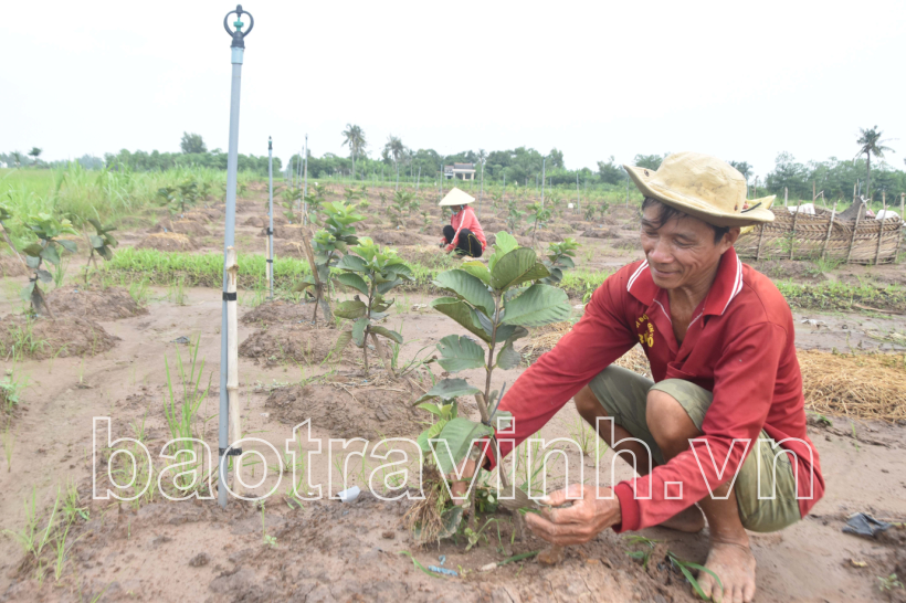 Mô hình trồng ổi kết hợp chanh không hạt đầu tiên trên 0,5ha đất lúa ở vụ thu đông - mùa 2020 của nông dân Giáp Văn Ghi, ấp Giồng Lớn, xã Vinh Kim nhằm thích ứng biến đổi khí hậu.