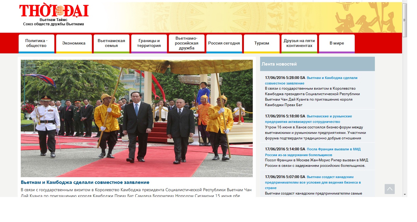 Giao diện Báo điện tử Thời đại phiên bản tiếng Nga. (Ảnh: Khánh Lan)