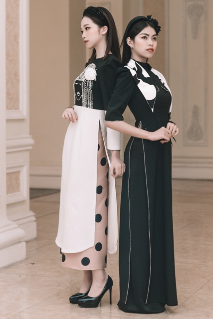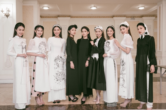 Với hai tone màu chủ đạo là đen và trắng, BST Nàng thơ của Cao Minh Tiến đã làm nổi bật lên những đường nét trang trí được vẽ và đính thủ công tinh tế, cầu kỳ. NTK khéo léo hoà trộn những yếu tố thủ công làng nghề với các nét hiện đại, mang tính xu hướng.