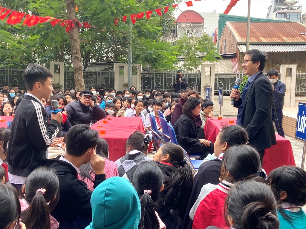 | Các em học sinh tham gia buổi giao lưu |