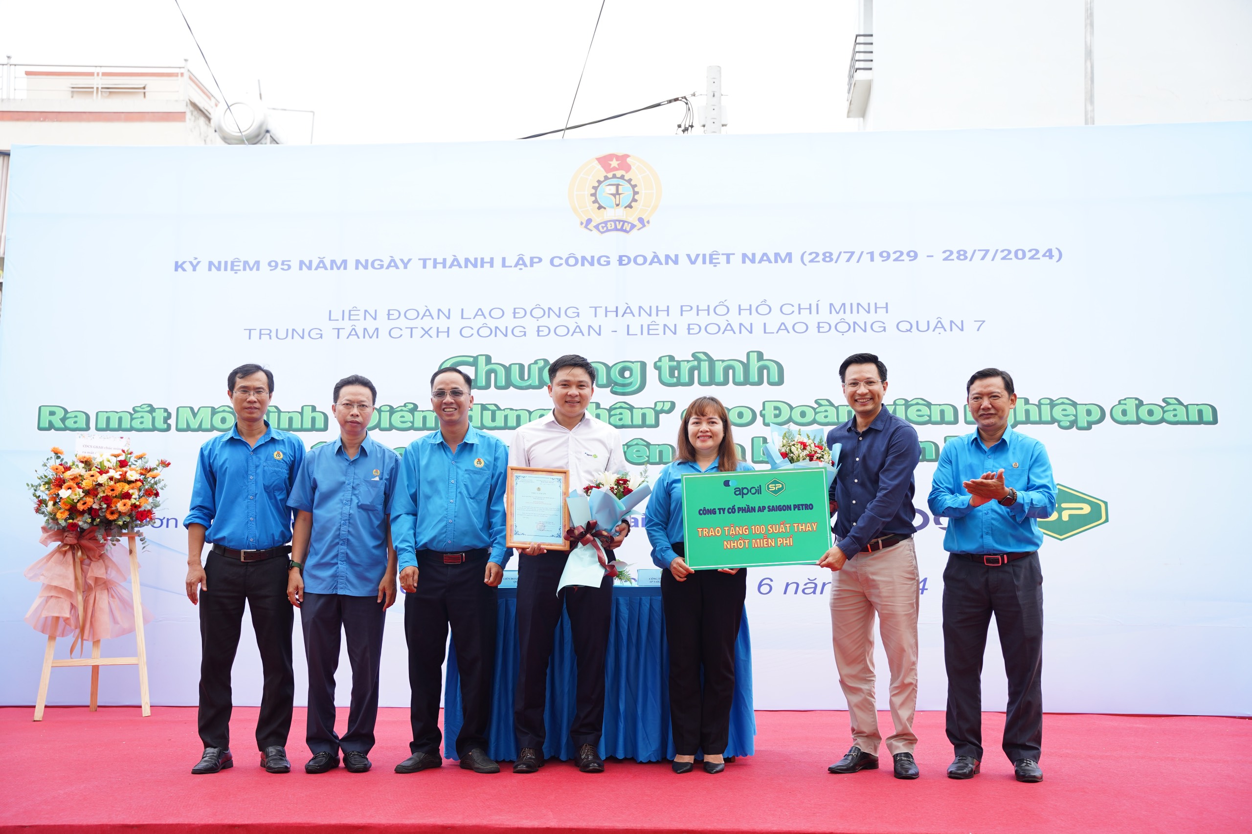 | Trao tặng 100 suất thay nhớt miễn phí cho đoàn viên nghiệp đoàn. |