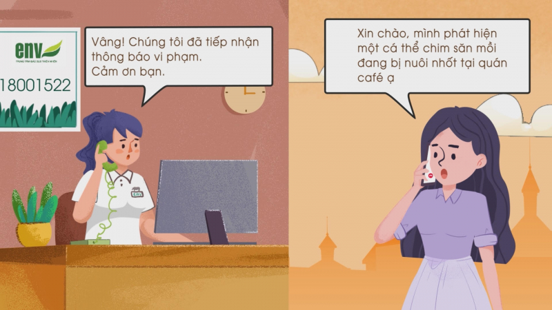 Phim ngắn “Bảo vệ động vật hoang dã chỉ bằng một cuộc gọi miễn phí” minh họa quá trình xử lý một tin báo vi phạm thường nhật được ENV tiếp nhận từ người dân qua đường dây nóng 1800-1522.