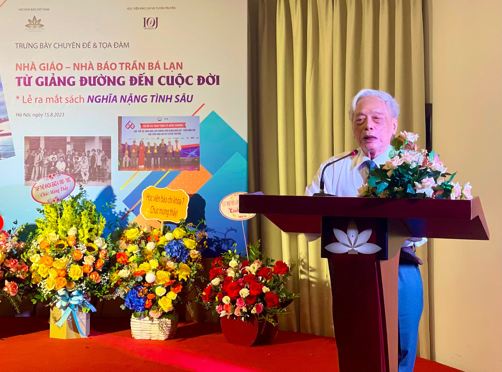 Ngày 15/8, tại Hà Nội, Hội Nhà báo Việt Nam phối hợp với với Viện Báo chí - Học viện Báo chí và Tuyên truyền tổ chức ra mắt cuốn sách “Nghĩa nặng tình sâu” và trưng bày chuyên đề, tọa đàm "Nhà báo, nhà giáo Trần Bá Lạn: Từ giảng đường đến cuộc đời", với sự tham dự của tác giả; lãnh đạo, nguyên lãnh đạo các cơ quan báo chí, Hội Nhà báo Việt Nam qua các thời kỳ; các thế hệ nhà báo và học trò của ông.