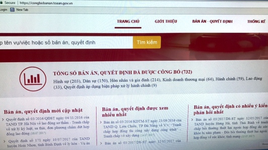 Trang thông tin điện tử công bố bản án, quyết định của Tòa án. (Ảnh: TH).