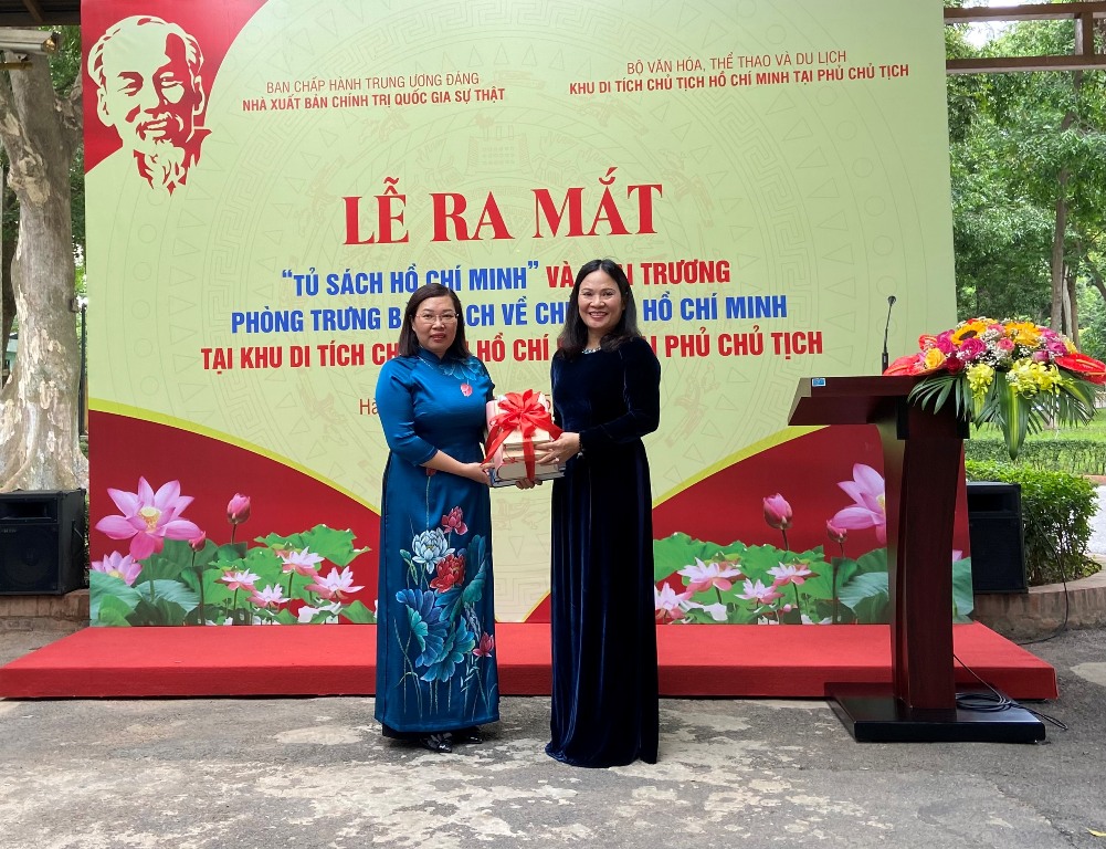 | Nhà xuất bản Chính trị quốc gia Sự thật tặng một số ấn phẩm tiêu biểu cho Khu di tích Chủ tịch Hồ Chí Minh tại Phủ Chủ tịch. |