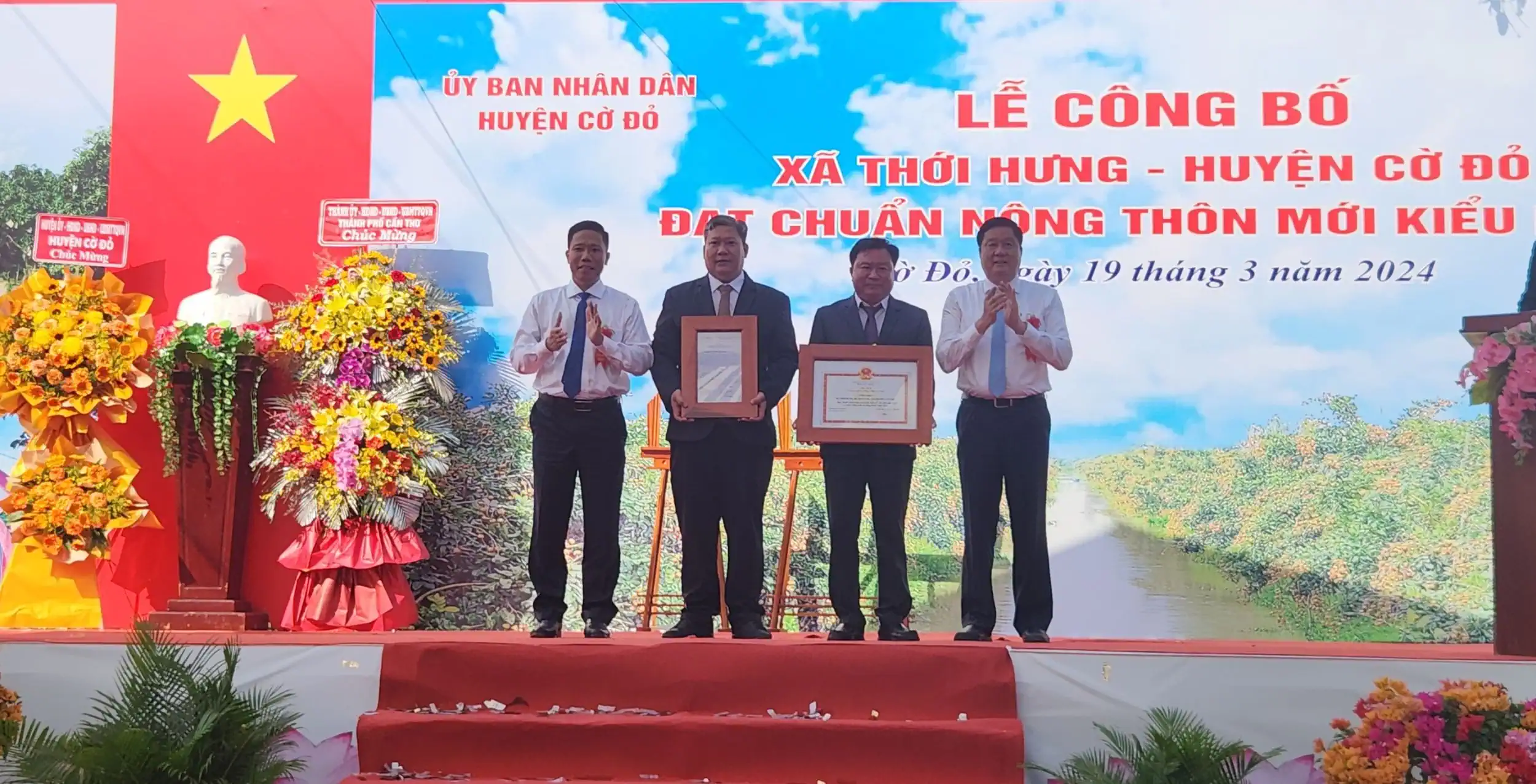 (CT) - Sáng 19-3, UBND huyện Cờ Đỏ long trọng tổ chức Lễ Công bố xã Thới Hưng đạt chuẩn nông thôn mới (NTM) kiểu mẫu. Đồng chí Phạm Văn Hiểu, Phó Bí thư Thường trực Thành ủy, Chủ tịch HĐND thành phố; đồng chí Nguyễn Thực Hiện, Phó Chủ tịch UBND TP Cần Thơ cùng lãnh đạo một số sở ngành hữu quan đến dự.