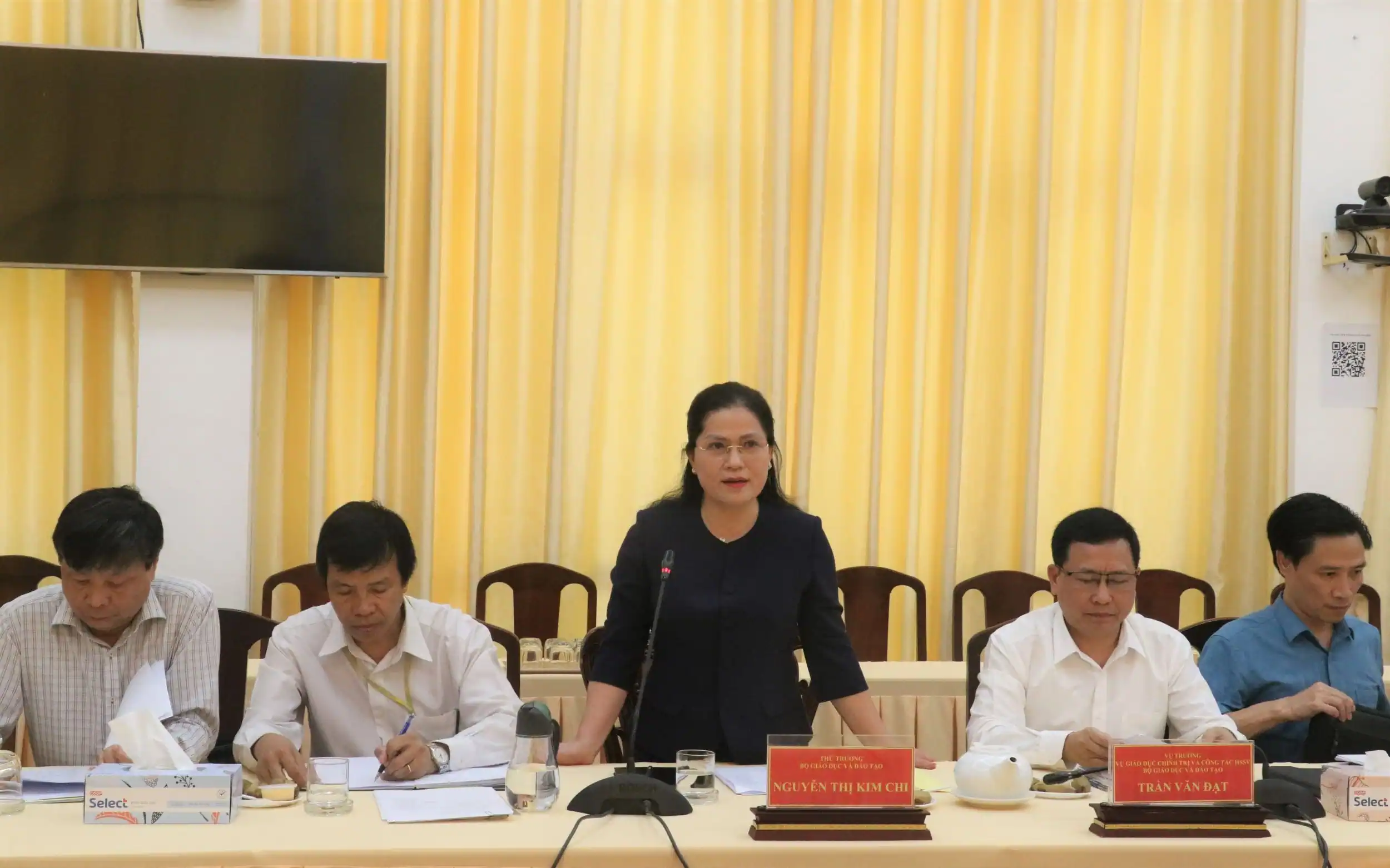 Bà Nguyễn Thị Kim Chi, Thứ trưởng Bộ Giáo dục và Đào tạo, phát biểu kết luận buổi làm việc.