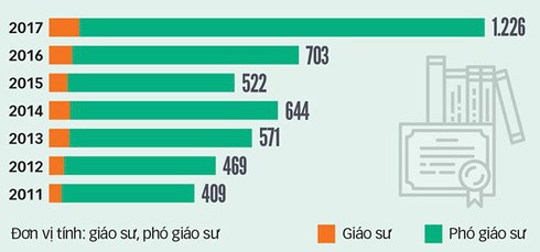 Số lượng GS, PGS từ năm 2011 đến 2017 (Biểu đồ: Tuổi trẻ)