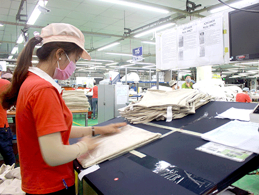 Công nhân làm việc tại Công ty TNHH Kwong Lung Meko, một doanh nghiệp FDI chuyên về sản xuất hàng may mặc xuất khẩu.