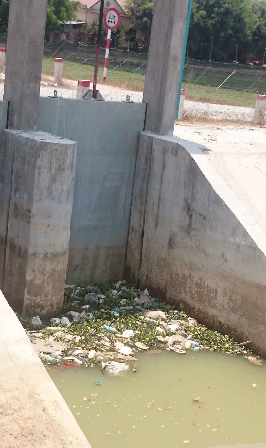 Rác ùn ứ tại cống thủy lợi Khu tưới Đức Hòa