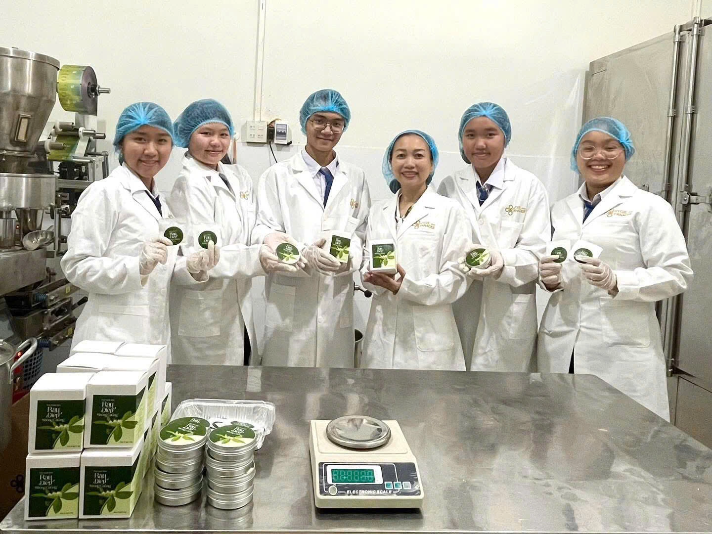 Cô Trương Thị Minh Hải (người thứ 3, từ phải qua) hướng dẫn học sinh nghiên cứu khoa học kỹ thuật. Ảnh: NVCC