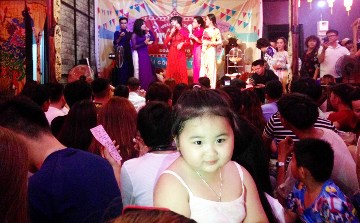 Quán trà kịch Ba Tây Trà Lầu chật kín khán giả đến xem. Ảnh: DUY KHÔI