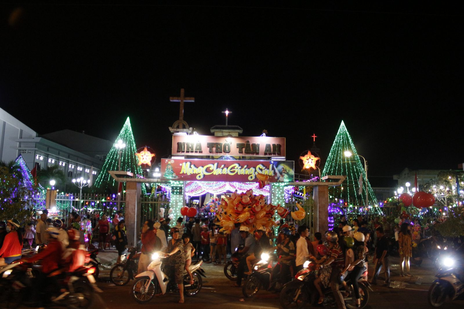 Khắp các con đường, từ đường Hùng Vương, Quốc lộ 1, Quốc lộ 62,… từng dòng xe tấp nập nối nhau đến các điểm vui chơi, giải trí, nhà thờ.