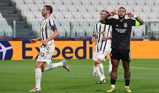 Depay ăn mừng bàn thắng mở tỷ số vào lưới Juventus