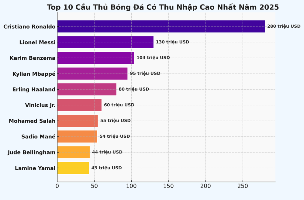 Top 10 cầu thủ bóng đá có thu nhập cao nhất năm 2025 (Theo dữ liệu của Forbes)