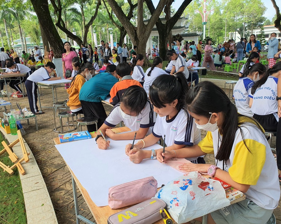 Có 35 đội thi vẽ tranh, mỗi đội gồm ba học sinh, hoàn thành bức tranh trên khổ giấy A1 trong thời gian 120 phút. Nội dung thể hiện xoay quanh hình ảnh về sự ham thích đọc sách, các hoạt động về sách như cảnh sinh hoạt, học tập, vui chơi, thư viện... Và 112 học sinh mầm non tham gia tô tượng.
