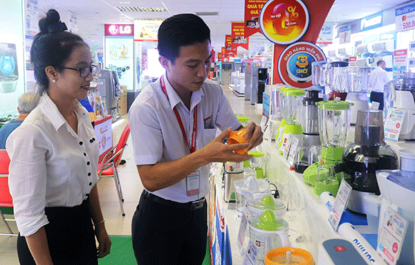 Dịp Tết được xem thời điểm vàng để người tiêu dùng mua sắm hàng điện tử - điện máy chính hãng với giá tốt, bởi các siêu thị, trung tâm mua sắm hàng điện tử - điện máy dùng tăng cường đẩy mạnh các chương trình khuyến mãi lớn, ưu đãi để hút khách. Hiện, các đơn vị kinh doanh, siêu thị, như: Co.opmart, MM Mega Market cũng đồng loạt triển khai những chương trình tặng quà tặng kết hợp giảm giá từ 10-30% dành cho sản phẩm điện gia dụng thiết yếu, như: nồi cơm điện, bếp điện từ, máy lọc nước… Cùng với đó, Siêu thị VinPro có chương trình “Sắm gia dụng mới- Giá rẻ vô đối -Tết đến thảnh thơi”; giảm giá 26% cho sản phẩm nồi cơm điện hiệu Toshiba, giảm giá 50% cho sản phẩm lò vi sóng hiệu Sharp, máy xay ép hiệu Philips…
