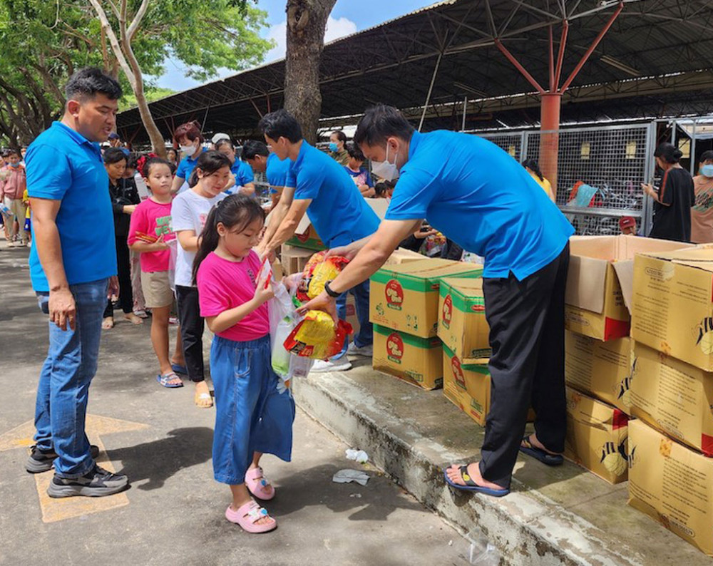 Trẻ em là con công nhân được Công đoàn cơ sở Công ty TNHH Giầy Ching Luh Việt Nam (huyện Bến Lức) tặng quà