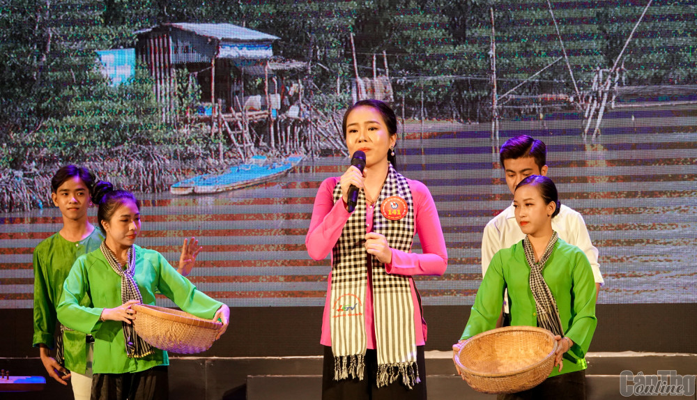 Thí sinh Phạm Thị Cẩm Nguyên (Đài PT-TH Hậu Giang) đạt giải Nhất hội thi với tiết mục “Bông bồn bồn rụng trắng”.