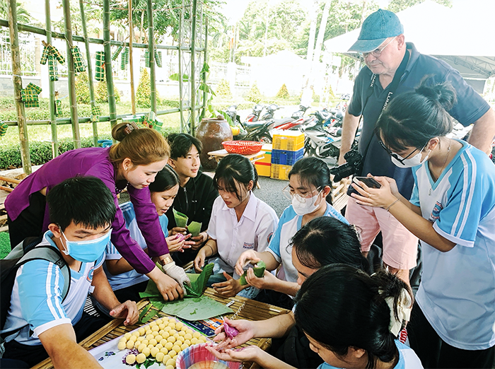 Không gian trải nghiệm làm bánh tại Lễ hội Bánh dân gian Nam Bộ năm 2025. Ảnh: KIỀU MAI