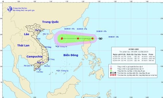 Theo Thông báo này, hiện nay đang xuất hiện áp thấp nhiệt đới gần biển Đông cách phía Bắc đảo Lu-dông (Phi-líp-pin) khoảng 120km về phía Đông Đông Bắc. Dự báo đến 7h ngày 1/9, vị trí tâm áp thấp nhiệt đới ở khoảng 18,7 độ vĩ Bắc; 118,5 độ kinh Đông, cách quần đảo Hoàng Sa khoảng 770km về phía Đông Đông Bắc. Sức gió mạnh nhất vùng gần tâm áp thấp nhiệt đới mạnh cấp 6-7 (40-60km/h), giật cấp 9.