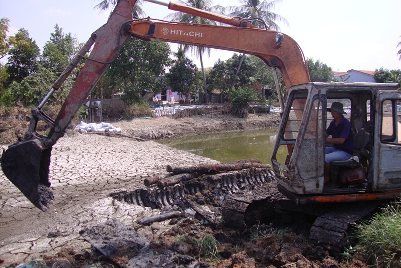 | Đào ao tích trữ nước ngọt ở ĐBSCL (Ảnh: K.V) |