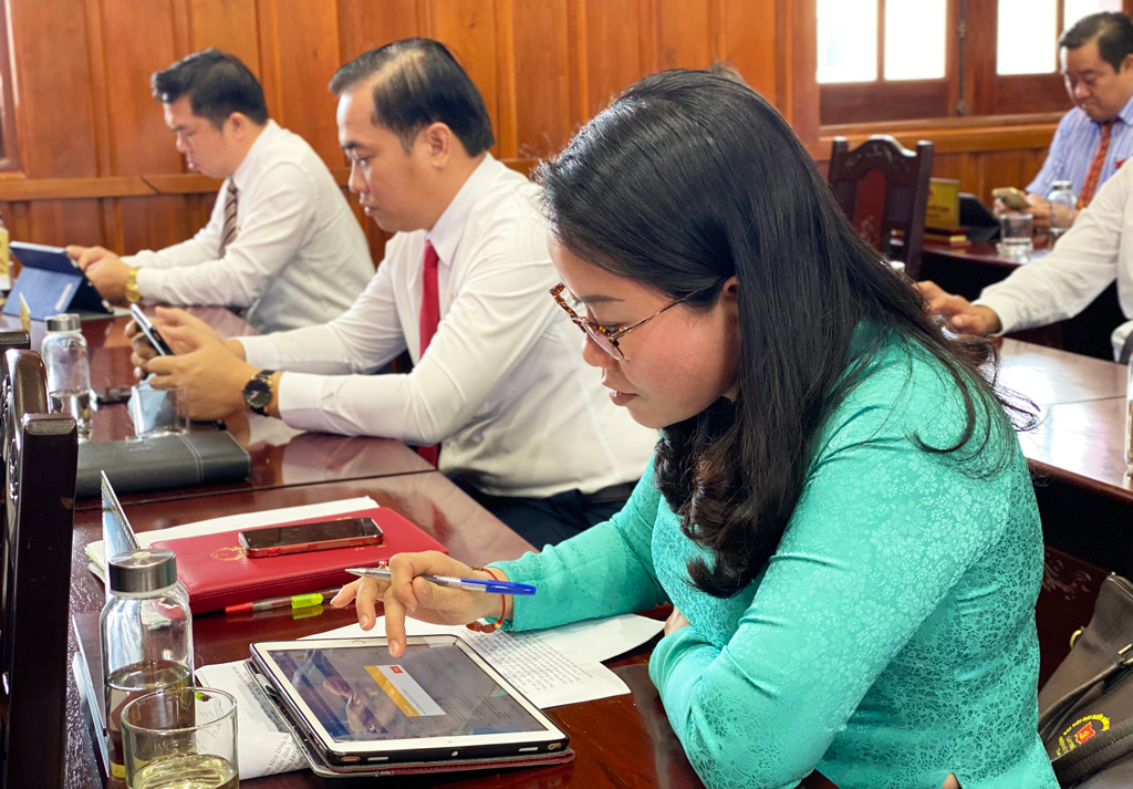 Đại biểu HĐND tỉnh biểu quyết thông qua nghị quyết tại Kỳ họp thứ 6