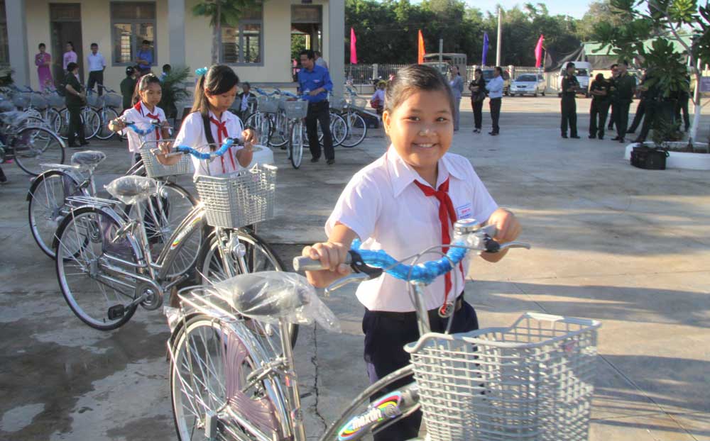 Được nhận chiếc xe đạp mới, em Nguyễn Ngọc Huế Trân, học sinh lớp 9/2 Trường THCS Bình Hòa hồ hởi: “Gia đình em không có đất, ba mẹ phải làm thuê nuôi em và em gái ăn học. Gia đình luôn thiếu trước hụt sau. Nhờ có sổ hộ nghèo, chi phí cho việc học của hai chị em cũng giảm được phần nào. Nay em càng vui hơn khi được tặng xe đạp mới. Có được món quà tặng này, em cảm giác như đoạn đường từ nhà đến trường ngắn lại”. Tuy gia đình khó khăn nhưng Huế Trân luôn cố gắng học tập và nhiều năm liền là học sinh giỏi.