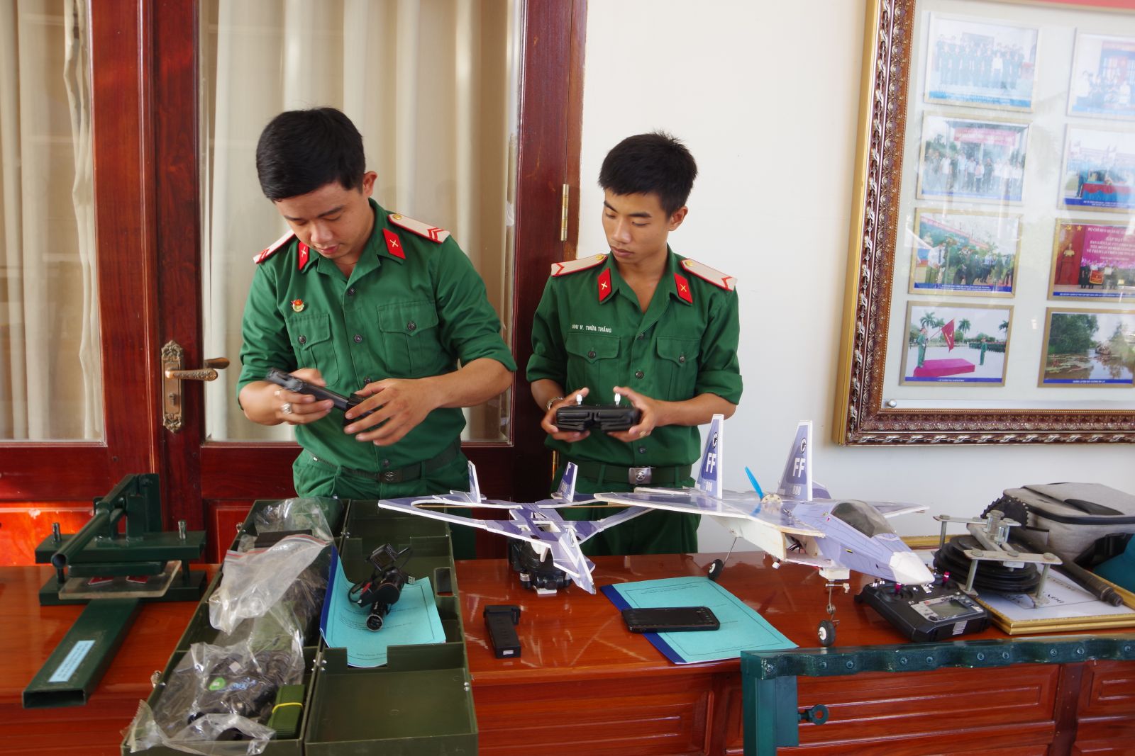 Còn với Máy bay mô hình phục vụ tập bắn súng máy phòng không 12,7mm của nhóm tác giả: Trung úy Nguyễn Thanh Thành - Chính trị viên, Thiếu úy Nguyễn Văn Quốc - Chính trị viên phó, Thiếu úy Đoàn Minh Thiên Phúc và hạ sĩ Đỗ Trọng Nghĩa thuộc Đại đội Bộ binh thị xã