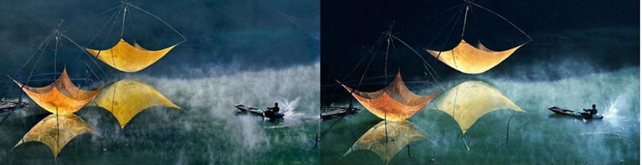 Đó là khoảnh khắc ngư dân bơi xuồng ra thăm vó trong bảng lảng sương sớm. Nhưng rồi giới nhiếp ảnh lại phát hiện tác phẩm này giống đến khoảng 90% so với tác phẩm “Vó đánh cá” của NSNA Lý Hoàng Long, từng đoạt huy chương vàng FIAP cuộc thi ảnh Trophy Gipuzkoa International 2014 tổ chức tại Tây Ban Nha.